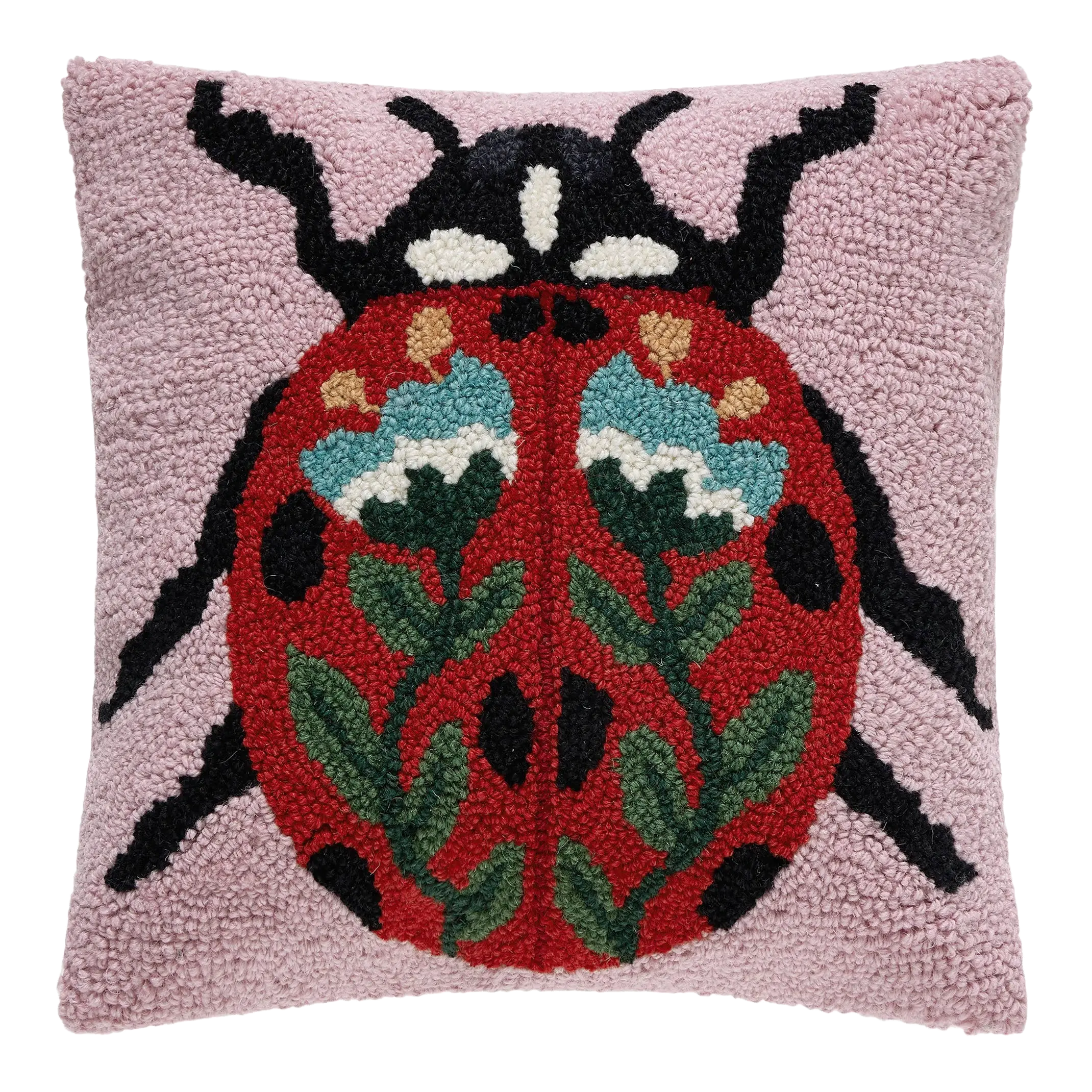The Folk Ladybug Hook Pillow is a handcrafted decorative cushion designed to bring warmth and artisanal charm to your living space. Measuring 14 x 14 inches, it combines a 100% wool hooked front with a soft 100% polyester velvet back, and arrives with a polyester insert for immediate plush comfort. This piece blends timeless folk-art whimsy with practical design: a charming ladybug motif adds a playful touch without overpowering your décor; a discreet zipper closure preserves a clean silhouette while allowing easy removal of the insert; the natural wool texture offers depth and durability, while the velvet backing adds a luxe feel. Built for longevity, the pillow uses eco-friendly materials and craft to support a more sustainable home décor choice.