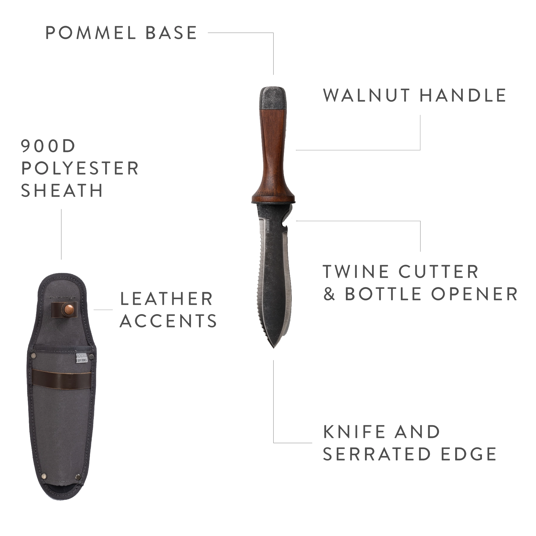 Finished with a smooth, durable walnut handle, the knife feels balanced and comfortable in hand, whether you’re working in the garden, camping, or tackling everyday tasks. A built-in twine cutter that doubles as a bottle opener adds a practical (and well-earned) finishing touch.
