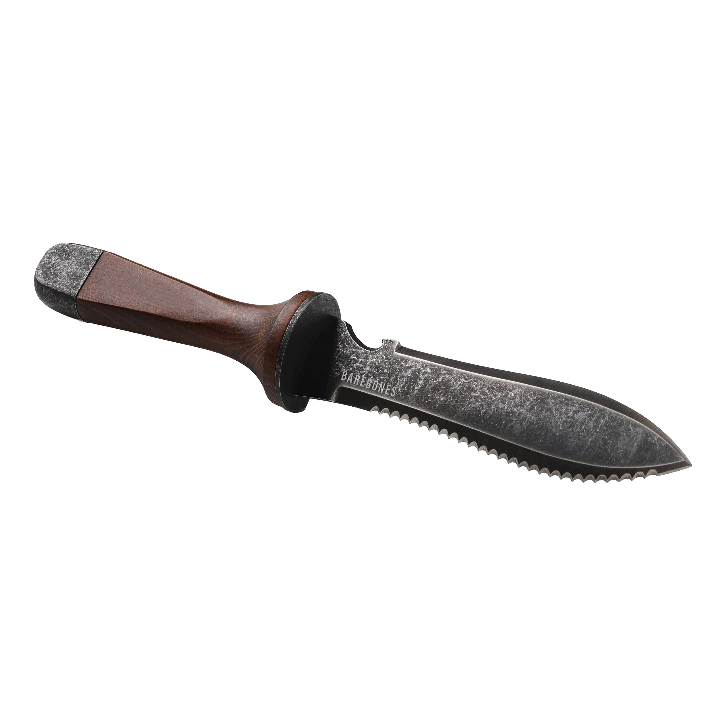 Built around a heat-tempered 6¾" pointed blade, this multi-purpose knife handles everything from digging and transplanting to cutting roots and harvesting with ease. A rust-resistant double edge—one smooth, one serrated—allows you to saw through branches, slice sod, or whittle kindling when needed. Handy inch markings etched into the blade help measure planting depth, while the flat pommel base is sturdy enough to pound in tent stakes.