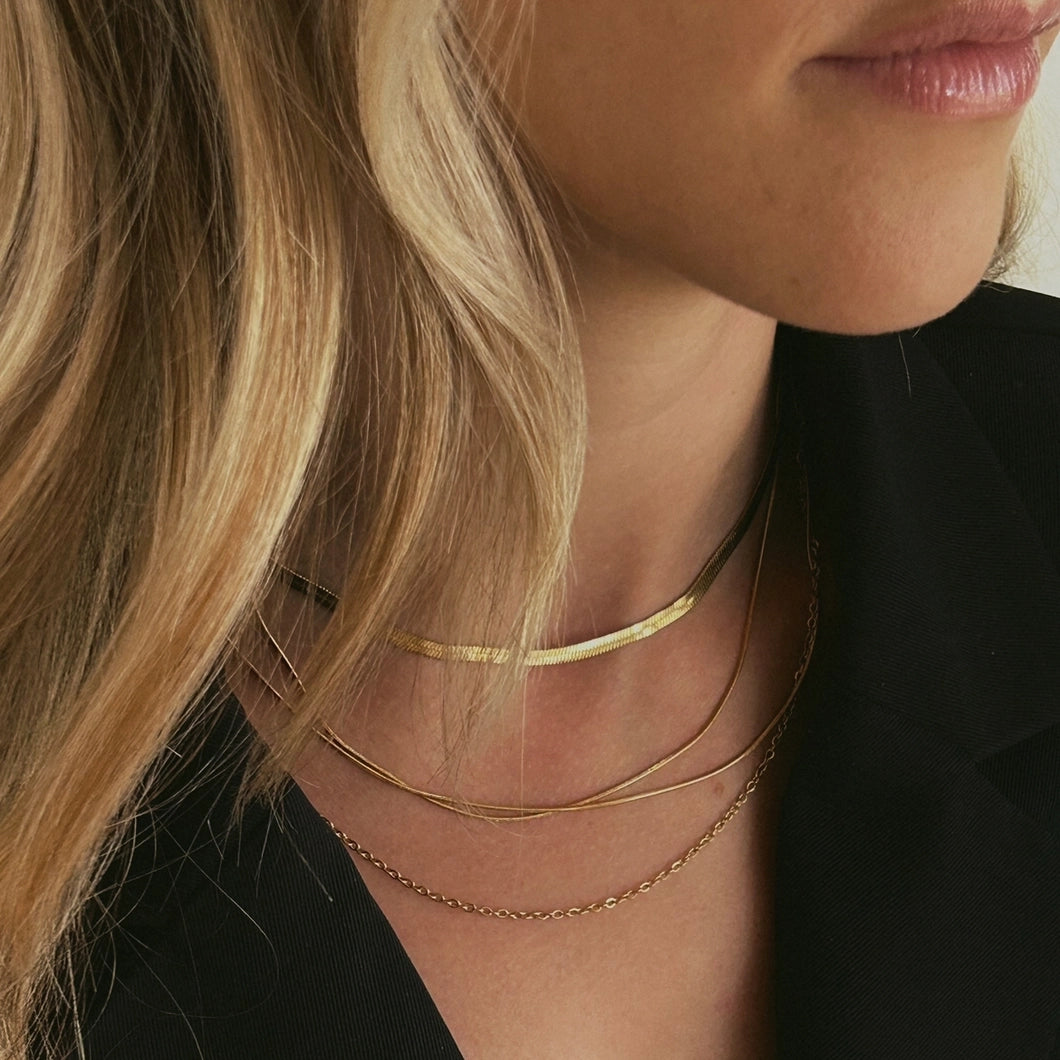 Olivia Necklace offers two-in-one elegance with zero fuss, giving you the look of effortless layering. Two sleek gold chains—one smooth, one minimal—pair to elevate every outfit. Crafted with 18K Gold over Stainless Steel and a durable PVD finish, it’s waterproof, tarnish-resistant, and hypoallergenic. The design champions longevity, a quiet eco-friendly benefit that reduces replacement and waste while still feeling luxe.
