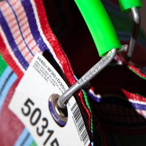 Bright, bold, and built for everyday utility, the Woven Market Tote reimagines the classic market bag in durable recycled materials. Hand-woven from recycled plastic and finished with sturdy aluminum handles wrapped in recycled tubing, it balances saturated color with practical structure.